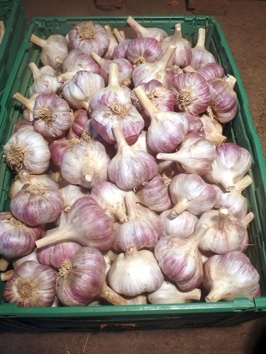 Über 20 verschiedene Knoblauch-Sorten im Anbau. Jetzt noch 12 Sorten nach Größe sortiert aus Ernte 2025 verfügbar!