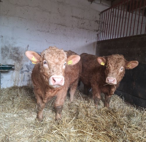 Biete zwei hornlose Absetzer Bullen Charolais x Angus zum Verkauf an. Die Bullen sind 10-11 Monate alt und wiegen ca. 400 kg pro Stück. Tiere werden nach Bioland-Richtlinien gehalten. Verkauf nur an landwirtschaftliche Betriebe mit aktueller HIT-Nummer innerhalb der akutellen Sperrzone für BTV-3 und BTV-8. Preis pro Bulle 2500 Brutto.