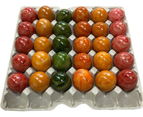 Die Eier werden im Rollverfahren gefärbt, Eine Farbe pro Ei.