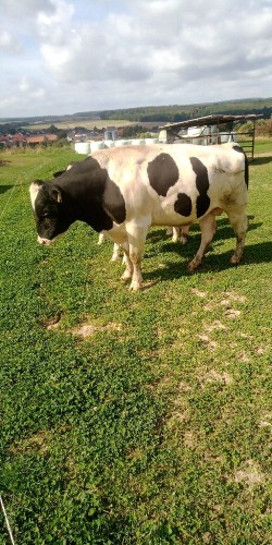 Unser Deckbulle Elias, 62% DSN, mischerbig hornlos, 2,5 Jahre alt sucht neuen Wirkungskreis. Zum Schlachten ist er wirklich zu schade, er ist außergewöhnlich friedlich, weidegewohnt und hat uns schon viele schöne Kälber beschert. Wer in seiner Herde Milch- und Fleischleistung, eine gute Grundfutterleistung und dazu noch Hornlosigkeit haben möchte, für den ist er sicher genau richtig.