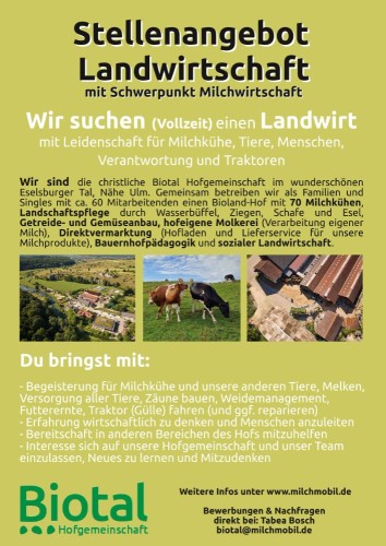 Wir suchen (Vollzeit) einen Landwirt mit Leidenschaft für Milchkühe, Tiere, Menschen, Verantwortung und Traktoren