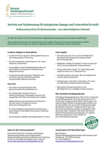 Vertrieb und Fachberatung für biologisches Saatgut und Futtermittel (m/w/d)