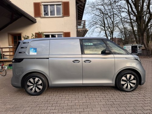 Erleben Sie die Zukunft des Transports: Unser exklusiv konfiguriertes ID. Buzz S-Modell kombiniert Fahrspaß auf Tesla-Niveau mit der legendären Wendigkeit eines VW Golf. Ein Fahrzeug, das nicht nur arbeitet, sondern durch Effizienz und Design begeistert. Der Bus wurde extrem schonend genutzt – wir haben damit lediglich unsere leichten Brotkisten ausgeliefert.